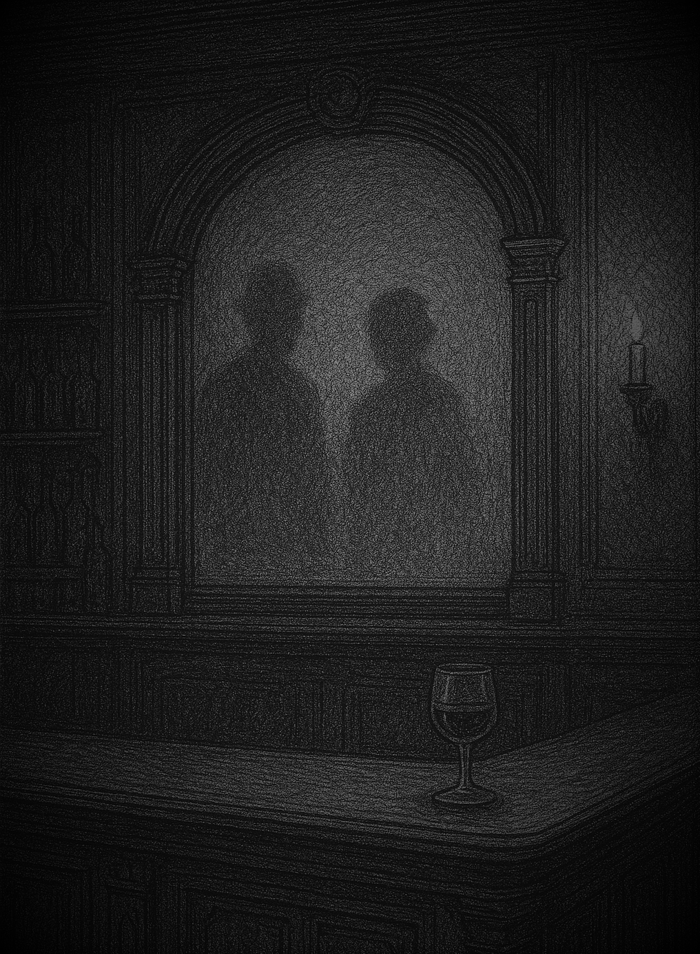 The mirror above the bar, once bright, now held a faint smudge that no polishing could remove — two silhouettes side by side, caught forever in the reflection.